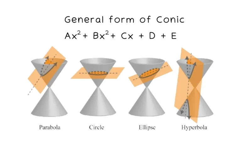 - Conic sections: Conic sections are curves formed by the intersection of a plane with a cone. They include ellipses (including circles), parabolas, and hyperbolas, each represented by different equation forms.