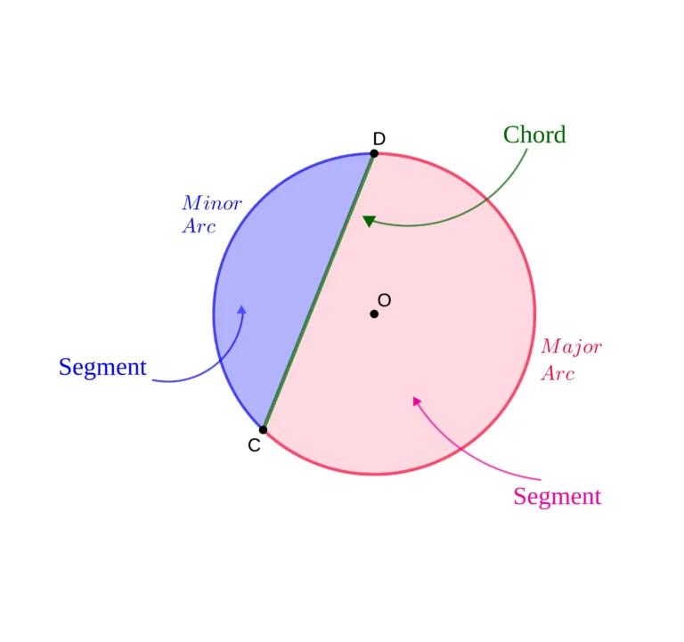 A chord is a line inside a circle that touches two points of the circumference. Depending on how the chord separates the circle, two segments, and arcs will be formed, one major and one minor.